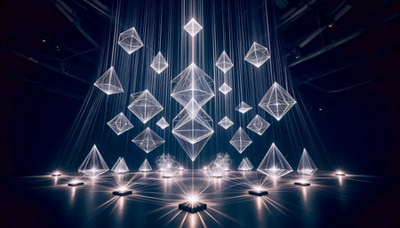 Light installations with geometry, Ai generated image