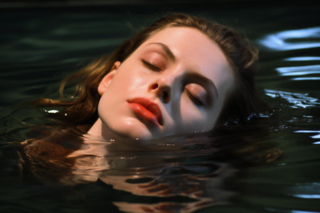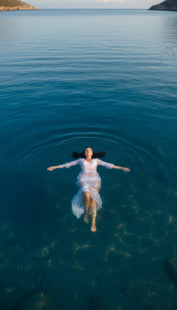 Serene Depths: A Peaceful Young Woman Immersed in Tranquil Sea Waters on a Sunny Day