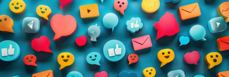 A vibrant image featuring colorful social media icons and emojis on a blue background, representing the interconnectedness and dynamism of online communities.