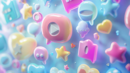 3d rendering of social media icons with speech bubbles and hearts on blue background