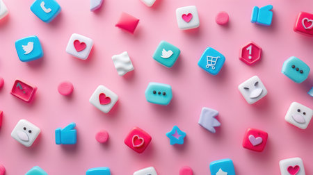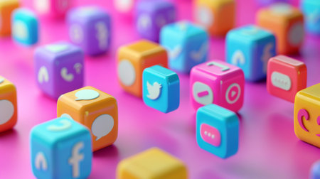 Colorful Blocks Representing Social Media Icons on a Vibrant Pink Background Illustrating Digital Communication in Modern Society. Generative AI