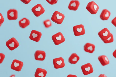 Bright red heart symbols float down against a soft light blue background. This playful scene evokes feelings of love and joy, perfect for expressing affection in digital communication.