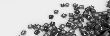 3d rendering of falling social networking icons.