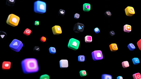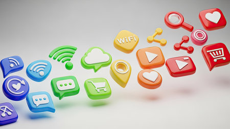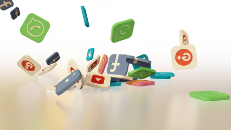 3d rendering of a lot of app icons on a colorful background