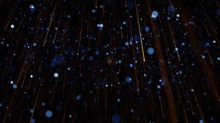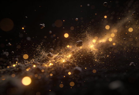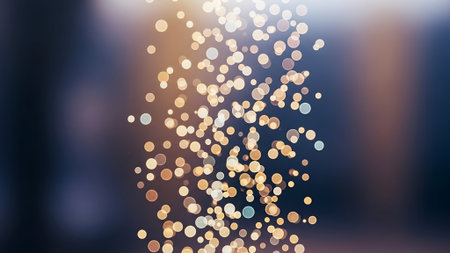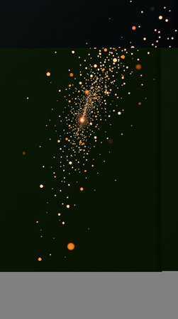 Golden sparks illuminate a dark background in this image. The composition features numerous bright, circular elements scattered across the frame, creating a sense of movement. Suitable for projects requiring a touch of magic or visual interest, the style appears modern, with potential uses in various commercial and editorial contexts.