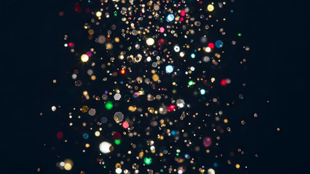 Confetti overlay texture with realistic lighting on a dark background creates a festive atmosphere