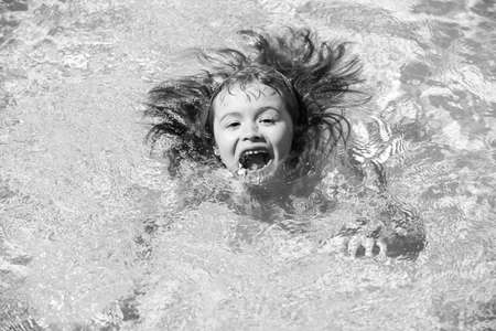 Child relax in summer swimming pool. Kids summer vacation concept.
