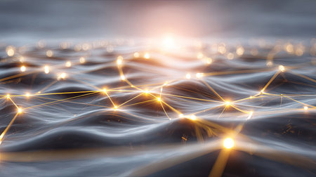 Softly glowing lights form a complex network against a dark, textured background, creating an intriguing abstract representation of connectivity in the digital realm.