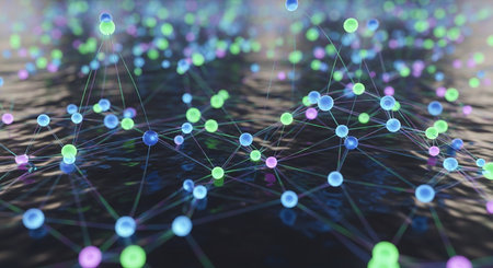 Network of colorful interconnected nodes visualizing global communication and data exchange