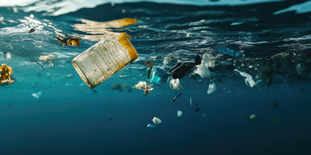 A stark depiction of plastic waste floating in ocean waters highlighting environmental pollution. This image conveys the critical need for conservation efforts and recycling initiatives.