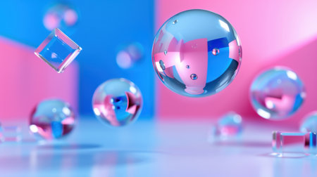a collection of levitating translucent globes abstract shape 3d render style on a background generative ai