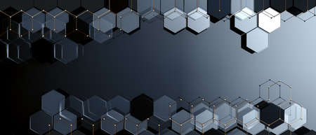 Abstract 3d rendering of hexagonal geometric shapes. Background with hexagons. Reflective surface. 3D render illustration