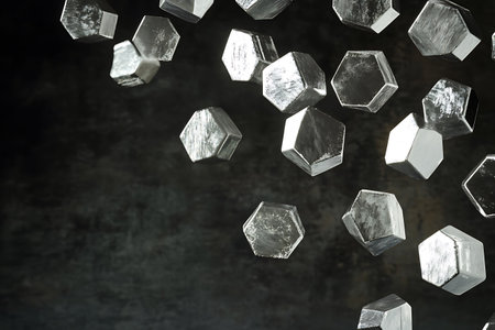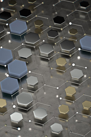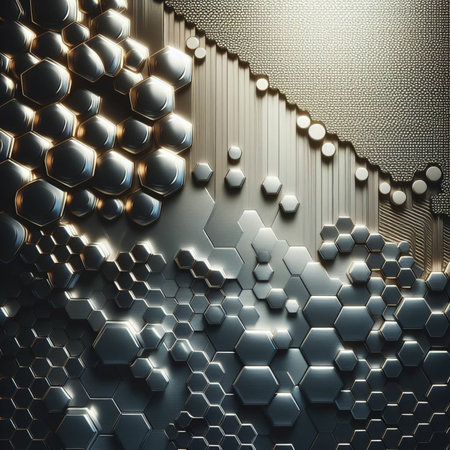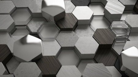Abstract hexagonal shapes in metallic colors, representing industrial strength and modern materials