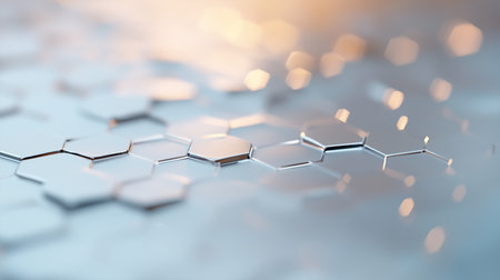 Modern geometric pattern with hexagonal shapes on a reflective surface in soft light