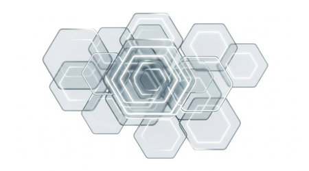 Abstract white geometric background transparent glowing hexagons pattern futuristic design glass structure data