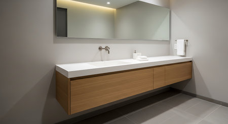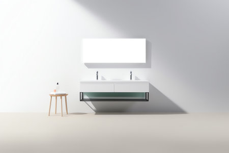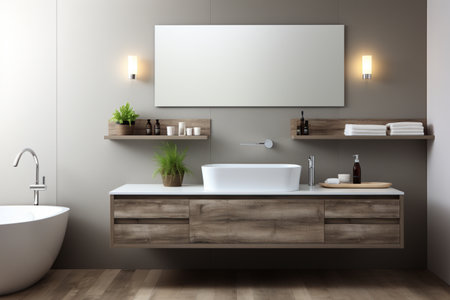 Scandinavian Bathroom: Wall-Mounted Vanity with Vessel Sink and Mirror. Generative ai. High quality illustration