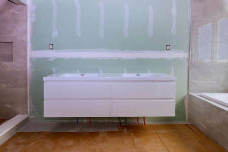 Designer renovation construction of master bathroom with shower interior of expensive