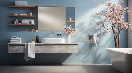 Modern bathroom interior with decorative objects. Style and hygiene concept. 3D Rendering