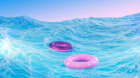 Inflatable rings in the sea, 3d render. Lifebuoy floating on the water. water safety concept