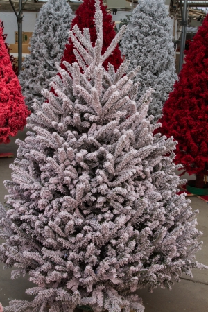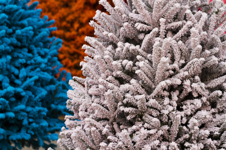 Shot of colored Christmas trees, flocked in different colors