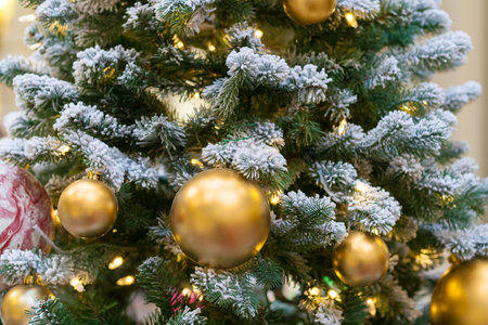 Christmas tree decorations with golden balls (close up)