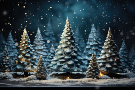 glowing christmas trees as panorama background