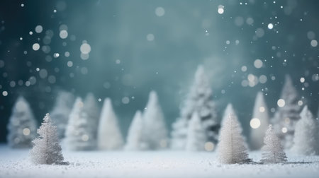 New year holiday concept. White winter snow christmas forest for greeting card. Copy space background