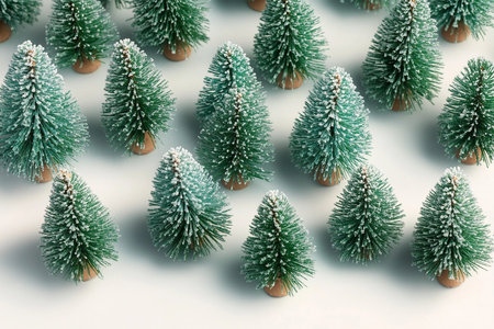 Small green and white Christmas trees from top view