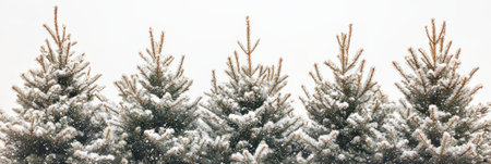 A serene winter landscape featuring snow-covered pine trees under a clear blue sky. This tranquil scene captures the beauty of nature in the cold season.