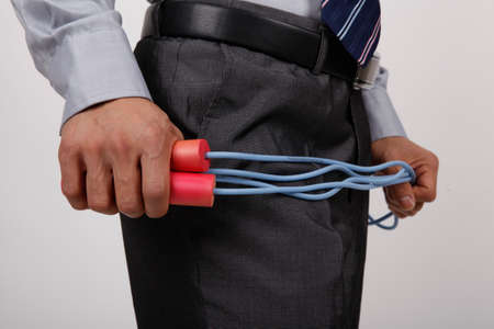 Leather sex shop whip fixed with adhesive tape on a white background.