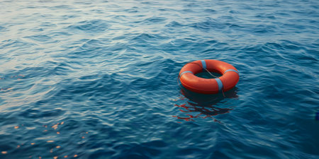 Lifebuoy floating on tranquil sea water, representing safety and assurance for swimmers in danger