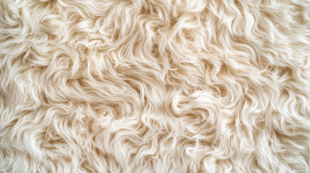 a curly fur texture, featuring soft, wavy fibers in light beige, perfect for a cozy rug or fabric design.