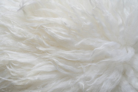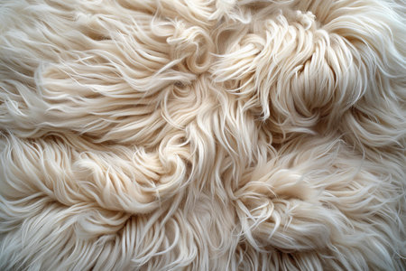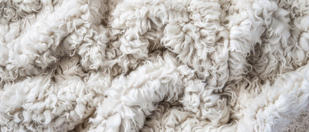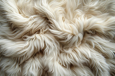 Seamless white fur texture resembling lamb wool, providing a cozy and clean background for design, closeup with bright lighting