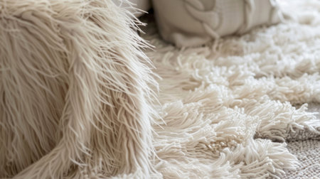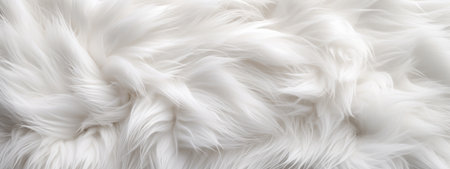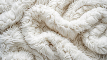 Close-up of luxurious plush white fur close-up, inviting warmth and softness.