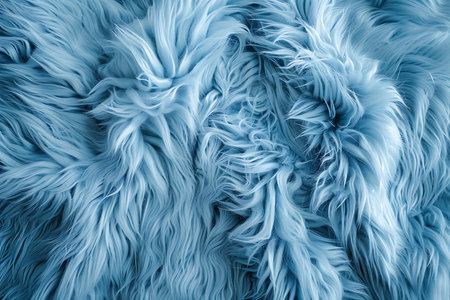 Soft blue shaggy fur texture with long fibers creating a wavy, tactile surface for cozy and decorative interiors.