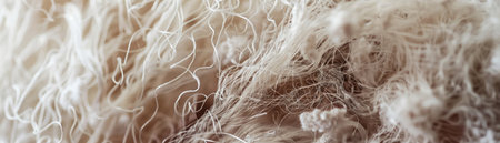 Generated AI image of intricate, textured fibers with an abstract appearance. The composition showcases delicate loops and soft forms.