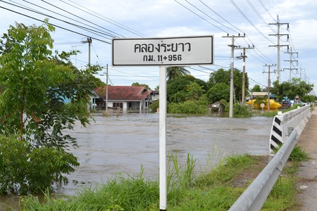 The flooded rural roads of Thailand due to the rainstorm Tien Mu swept through Thailand and brought heavy rain.