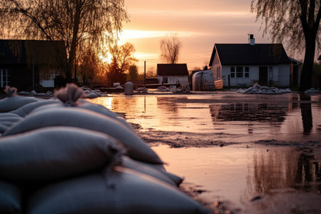 Severe Flooding Impacts Homes and Community in a Residential Area Surrounded by Water. Generative AI