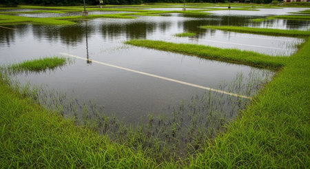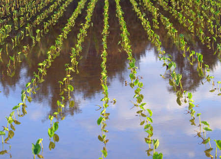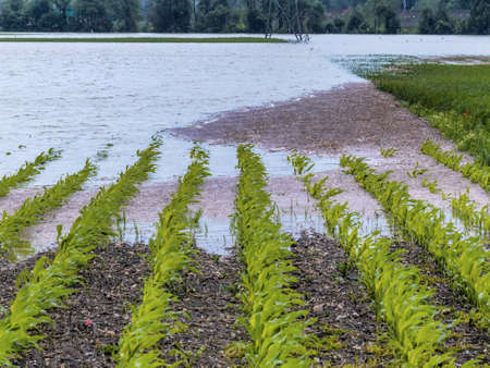 Flooded agricultural fields in the Netherlands with growing plants in summer after heavy rainfalls