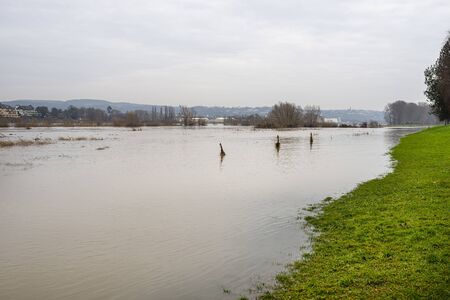 The high state of the Rhine in western Germany, water has risen from the riverbed.