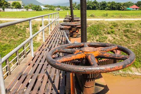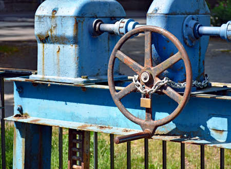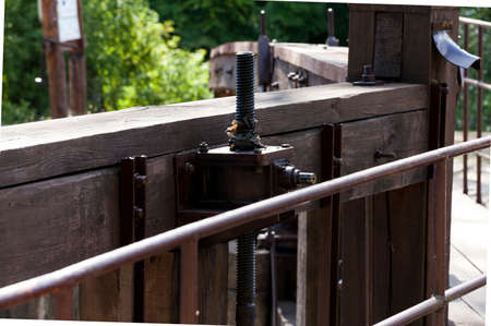 Old hydraulic closure system in sewage channel. Vintage waste treatment company was replacet by modern system