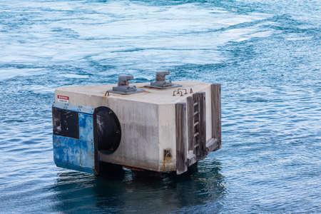 Marine defense or protection blocks at the dock of the port of Genoa, Italy Europe