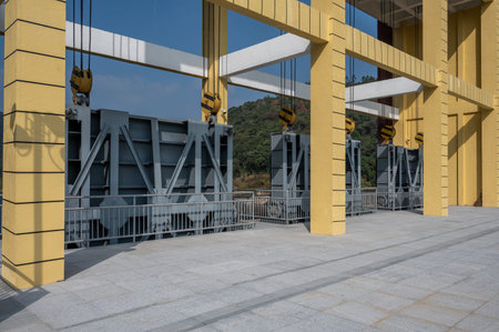Floodgate at Mae Klong Dam kanchanaburi thailand