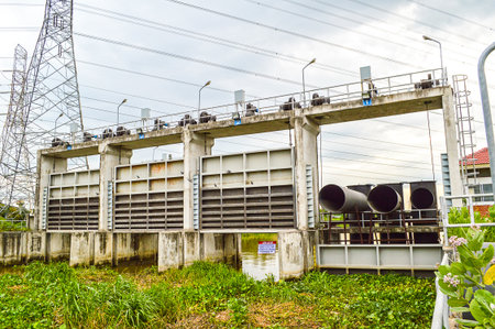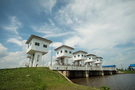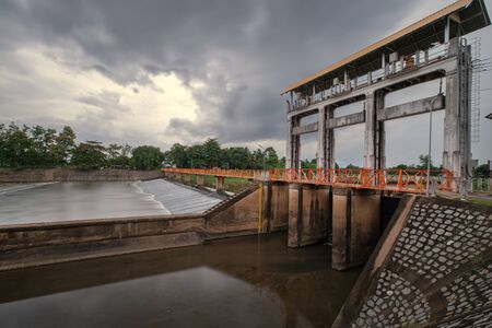 NAKHON SI THAMMARAT, THAILAND - June 8, 2020. Uthokvibhajaprasid barrage is functioning as a floodgate to reserve water for local agriculture,in Thailand