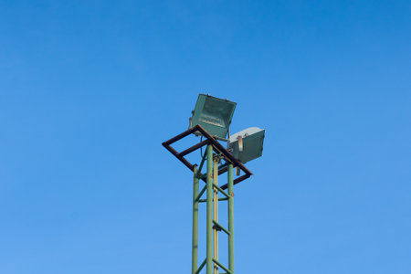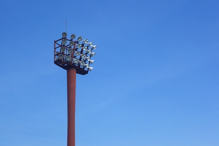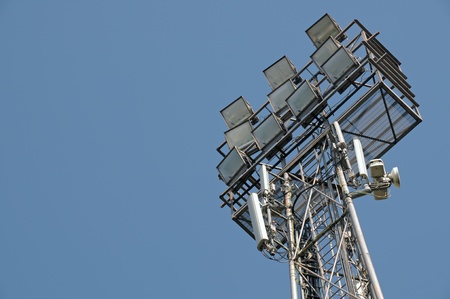 Spotlight tower against the blue sky background