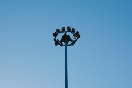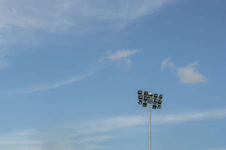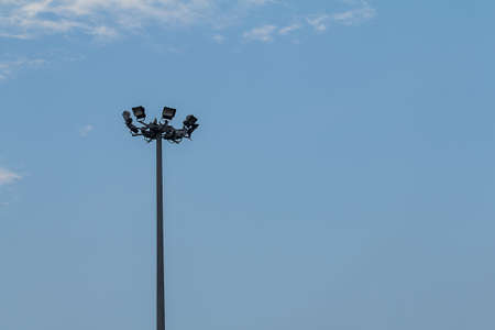 Stadium light tower in blue sky background