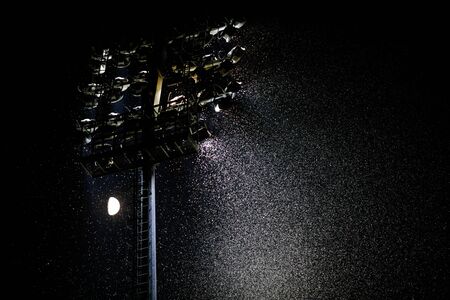 Raining in the stadium and spotlight