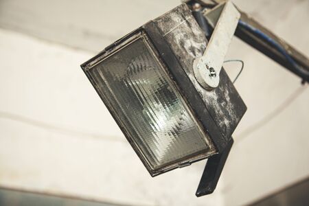 black floodlight in the garage wall background