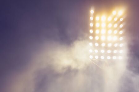 soccer stadium lights reflectors with smoke. football field