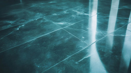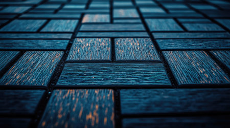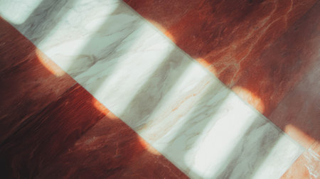 An interior shot features a patterned floor with a play of light and shadow. The design incorporates rectangular shapes and linear elements with color contrast. The lighting creates a contrast between light and dark areas. This image can be used for commercial projects such as backgrounds, or conceptual illustration.